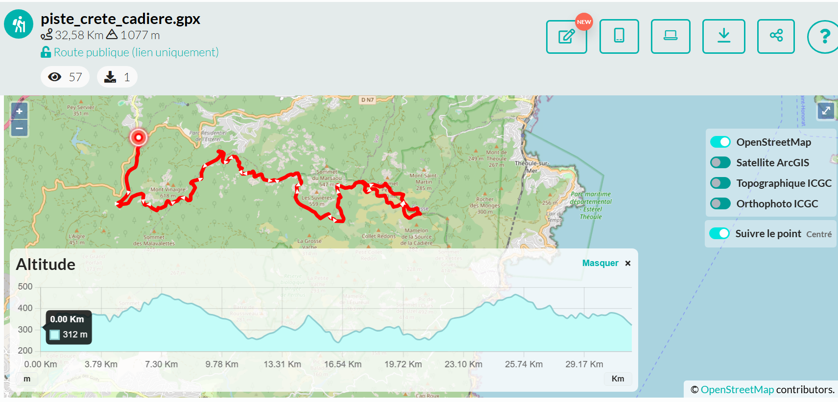 Parcours de 33 kms et 1077 m de D+, 3h – 3h30 selon votre rythme et vos arrêts. Un circuit qui surplombe le massif de l’Estérel. relativement accessible sur pistes larges mais parfois caillouteuses, en aller retour avec une petite boucle pour avoir des vues des deux côtés de la colline, vous garderez le sourire dans les deux sens, tellement les vues sont belles. Vous allez passer sous le mont Vinaigre (point culminant de l’Estérel) puis en prenant la piste des cols, vous resterez sur les crêtes. Vous verrez deux maisons forestières (la Duchesse et les Trois Thermes). Ensuite il faut monter sur une piste et vous accéderez à un superbe panorama avec du coté Est la baie de Cannes et les îles de Lérins. Au retour, un challenge pour trouver un plan d’eau naturel avec de nombreux nénuphars en fleurs selon la saison et l’heure de passage.